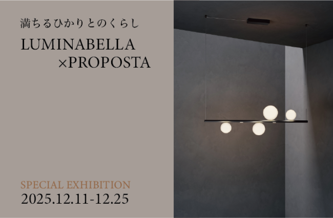 PROPOSTA の空間に、LUMINABELLA のヨーロッパ照明が織りなす光のレイヤーを体感いただける特別展示を開催いたします。